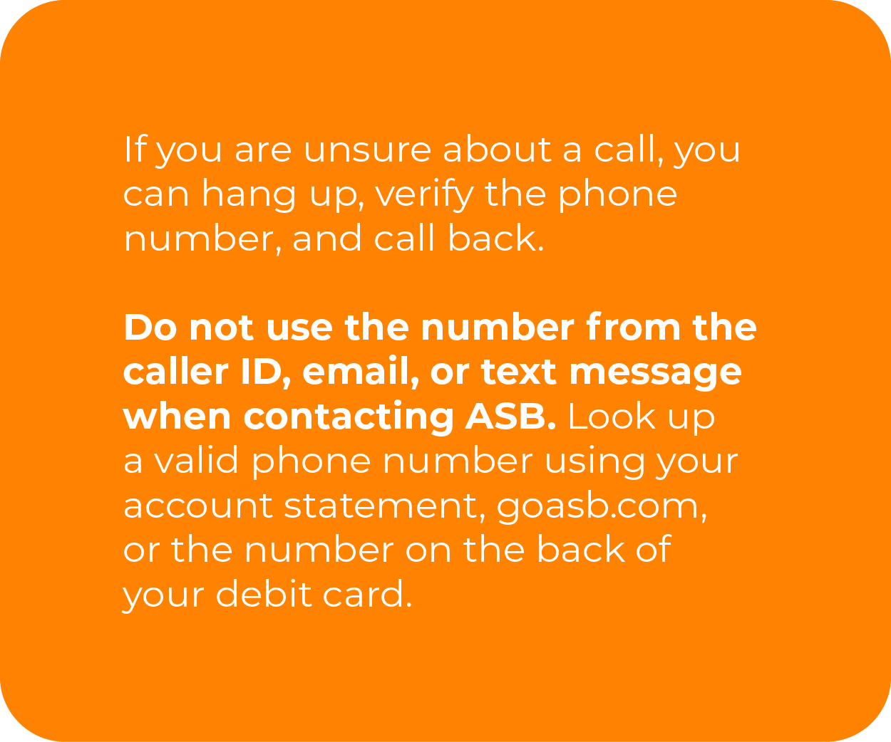 At ASB, our customers’ security is our highest priority. With increased scams and banking fraud across the country, we want to address best practices, safety information, and common scams to look out for.