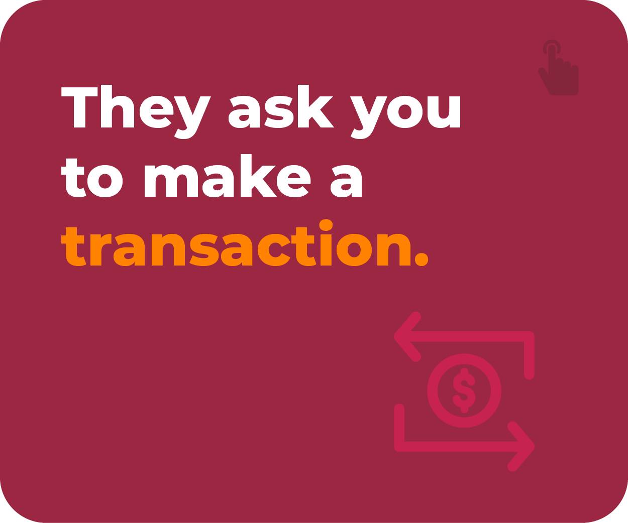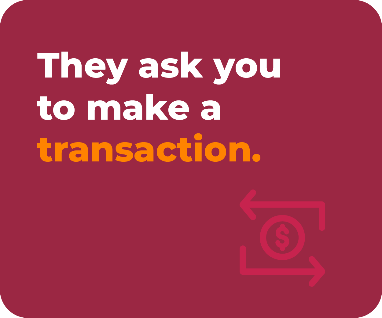 We may call, text, or email you about suspicious transactions, but we would never ask you to provide: