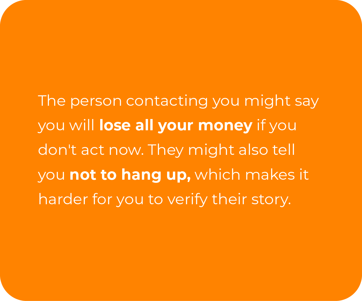 If the person contacting you shows any of the following warning signs, you should immediately be suspicious.